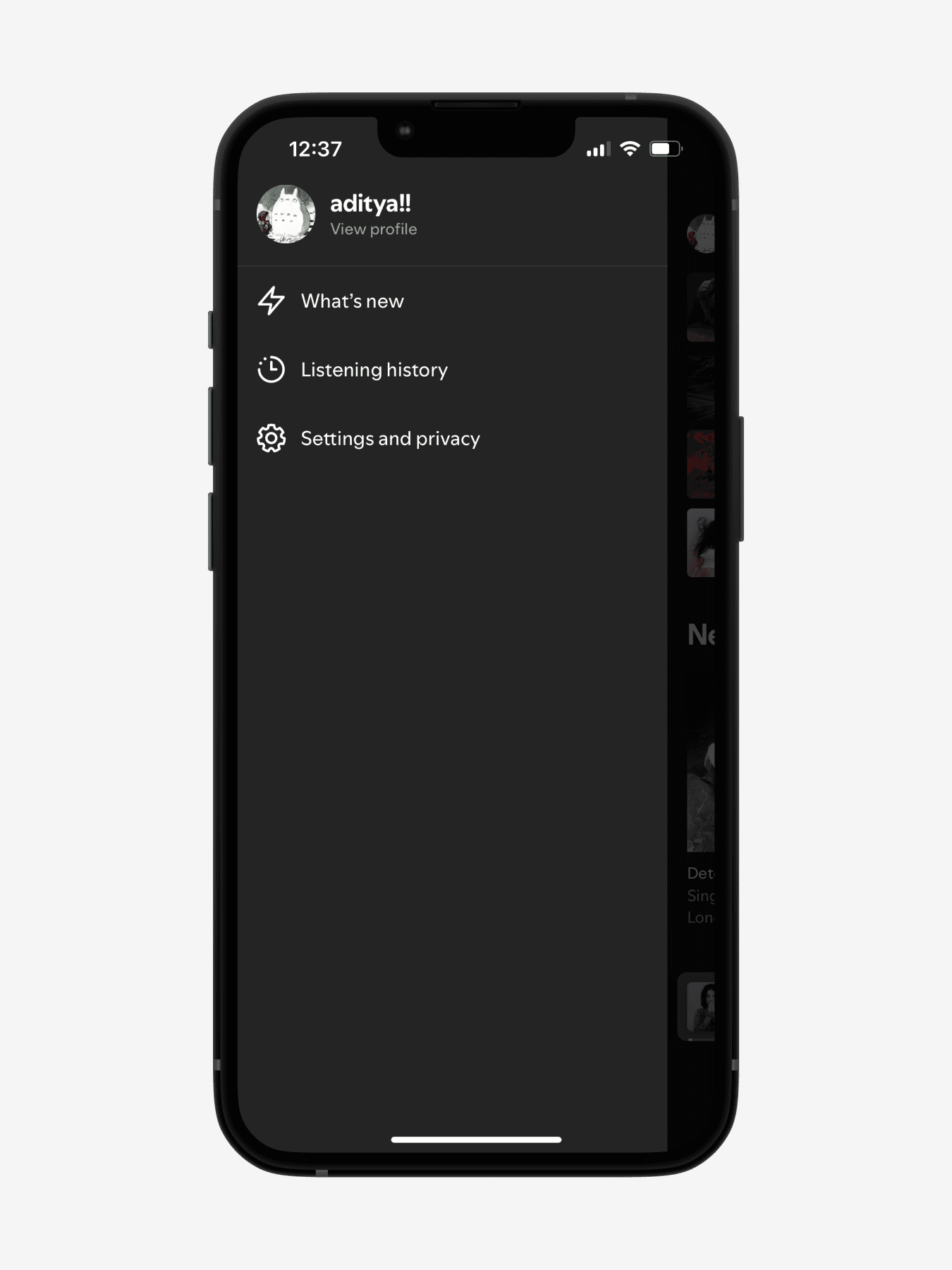 Side navigation menus are typically meant for quick access of an app’s settings and key features. But the "key features" of Spotify’s menu seem to be only two things: listening history and notifications, which seem incredibly out of place. Sure, they’re cool, but to the point that they should be in a sidenav?