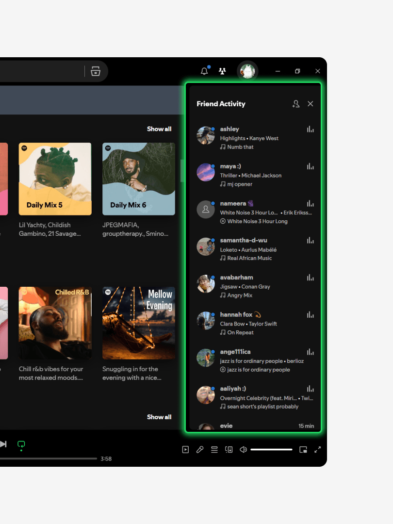 Spotify’s current Friend Activity feature on desktop.